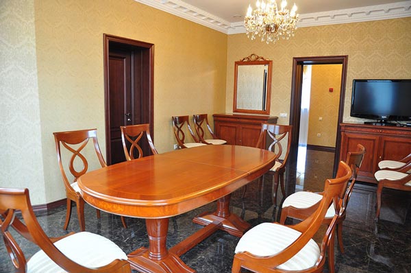 Санаторная столовая представляет собой здание из трех этажей и находится в самой живописной зоне. Четыре зала — в том числе, банкетный и VIP-залы — легко вмещают в себя большое количество отдыхающих — до 444 человек.