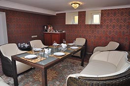 Инфраструктура: бассейн с гейзером и каскадным душем, сауна. Рядом с водной гладью находится комфортабельная зона отдыха, где можно, насладится напитками и выпить чаю. Зона бассейна оснащена душем, также имеется туалетная комната. Посетителям предлагают тапочки, полотенца, халаты, шапочки. В корпусе есть все, что необходимо для проведения деловых мероприятий. Есть переговорная комната. На первом этаже разместилась уютная столовая, где готовят разнообразные и вкусные блюда. Для гостей на личном автомобиле имеется бесплатная парковка. Территория корпуса украшена клумбами из цветов, красивым фонтаном, беседками. Несмотря на высокий уровень обслуживания, гостей удивят доступные цены.